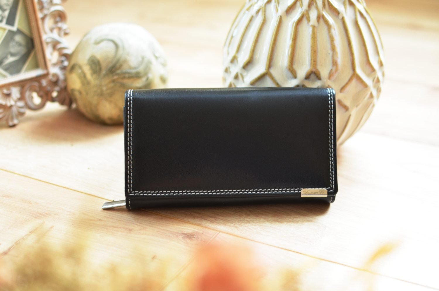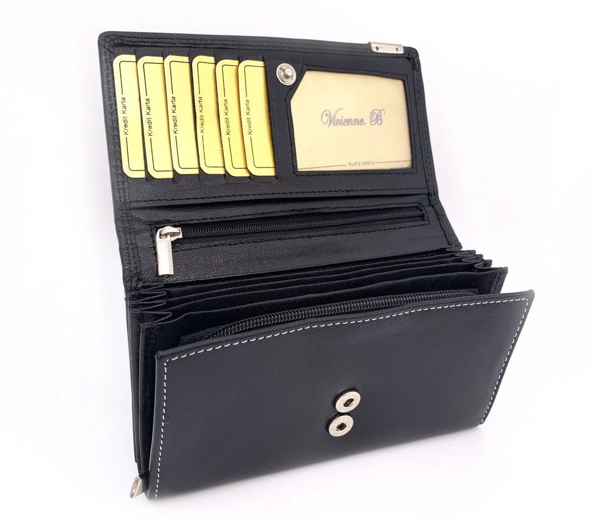 4 getrennte Scheinfächer & 1 doppeltes Münzfach mit Reißverschluss.