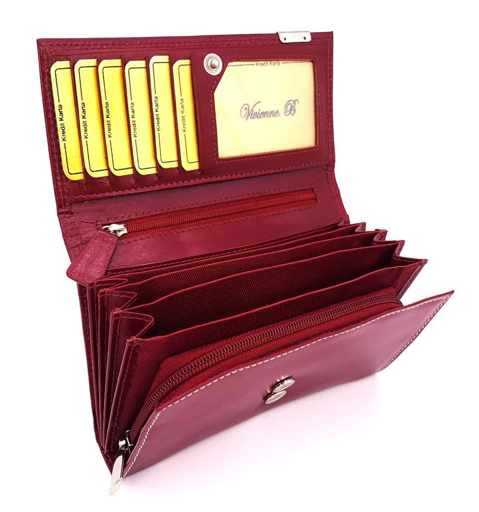 Vivienne B. Damen Portemonnaie aus glattem und weichem Leder im Langformat
