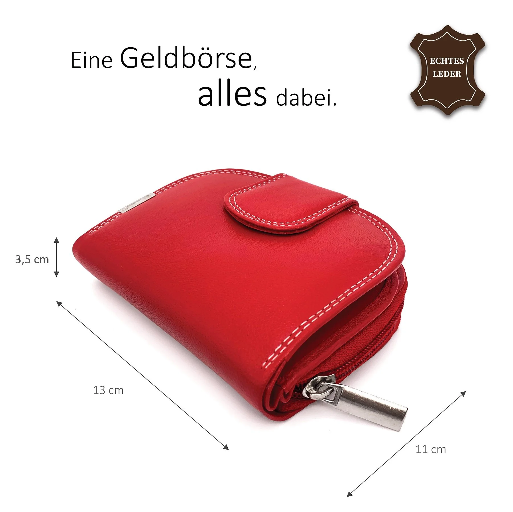 Vivienne B. hochwertige Damen Ledergeldbörse Reißverschluss-Sicherheitsfach